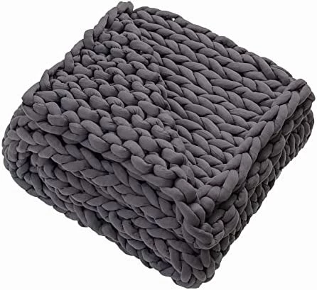 YHzxfz Chunky Knitted Weighted Blanket 48″x72″ 15lbs Handmade Non-Shedding Thick Knit Throw Blanket Evenly Weighted Breathable Throw For Bed Sofa Chair Deep Grey