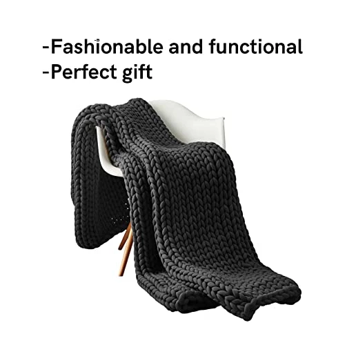 YnM Weighted Blanket, Hand Made Chunky Knit Weighted Throw Blanket For Sleep, Stress Or Home Décor, Rest And Relax In Style With YnM’s Breathable Weighted Blankets (Dark Grey, 15lbs)
