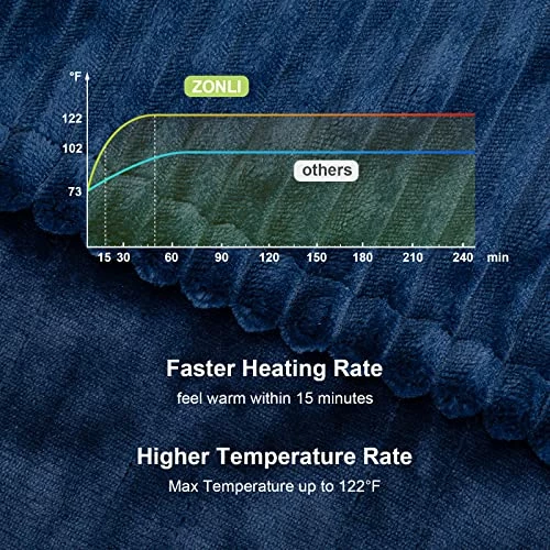 - FAST HEATING – Our electric blanket heats up amazingly fast; you only need to switch between 10 heating levels (82℉-122℉) to as warm as you want; it can heat up to 122°F in 15 minutes. exactly twice as fast as other heating blankets! Heat is more evenly distributed to promote blood circulation, warming and relaxing your body, no more cold!